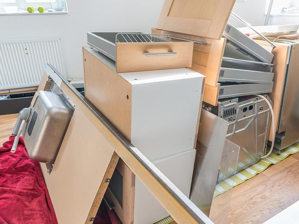 Manchmal kommt der Moment, an dem eine Küche nicht mehr unseren Ansprüchen genügt, nicht mehr unserem Geschmack entspricht oder einfach langweilig ist. Ein Austausch ist nötig. Sodann übernehmen wir für Sie diese aufwendige und durchaus anstrengende Aufgabe und können wir Ihre Küche abbauen, die einzelnen Elemente und Geräte von ihrem Platz entfernen sowie die Anschlüsse absichern. Dies erledigen wir mit Umsicht und fachgerecht. Wenn die Küche umweltgerecht entsorgt werden soll, trennen wir die einzelnen Materialien bereits beim Abbau, sodass sie einfacher recycelt werden können.